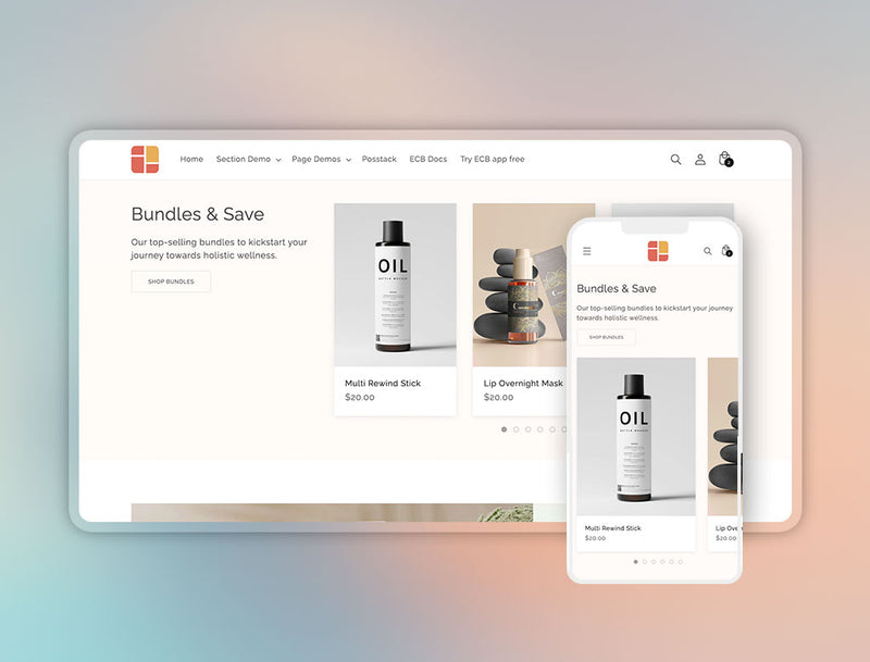 Combine multiple Featured Products/Collections to showcase a specific product grid.