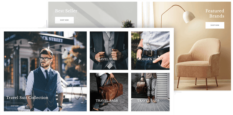 You can use the Images With Text (overlay options) to showcase your best-selling collections or highlight your seasonal sale promotions.