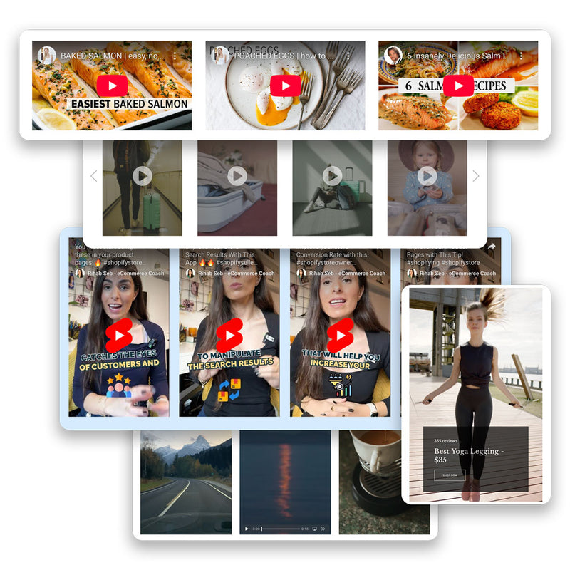 - Shoppable Videos: Create video carousels with clickable product links (one tag per video) using Shoppable Videos.